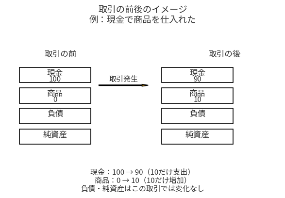 この5つの箱は、簿記3級以降もずっと使い続ける「共通言語」です。